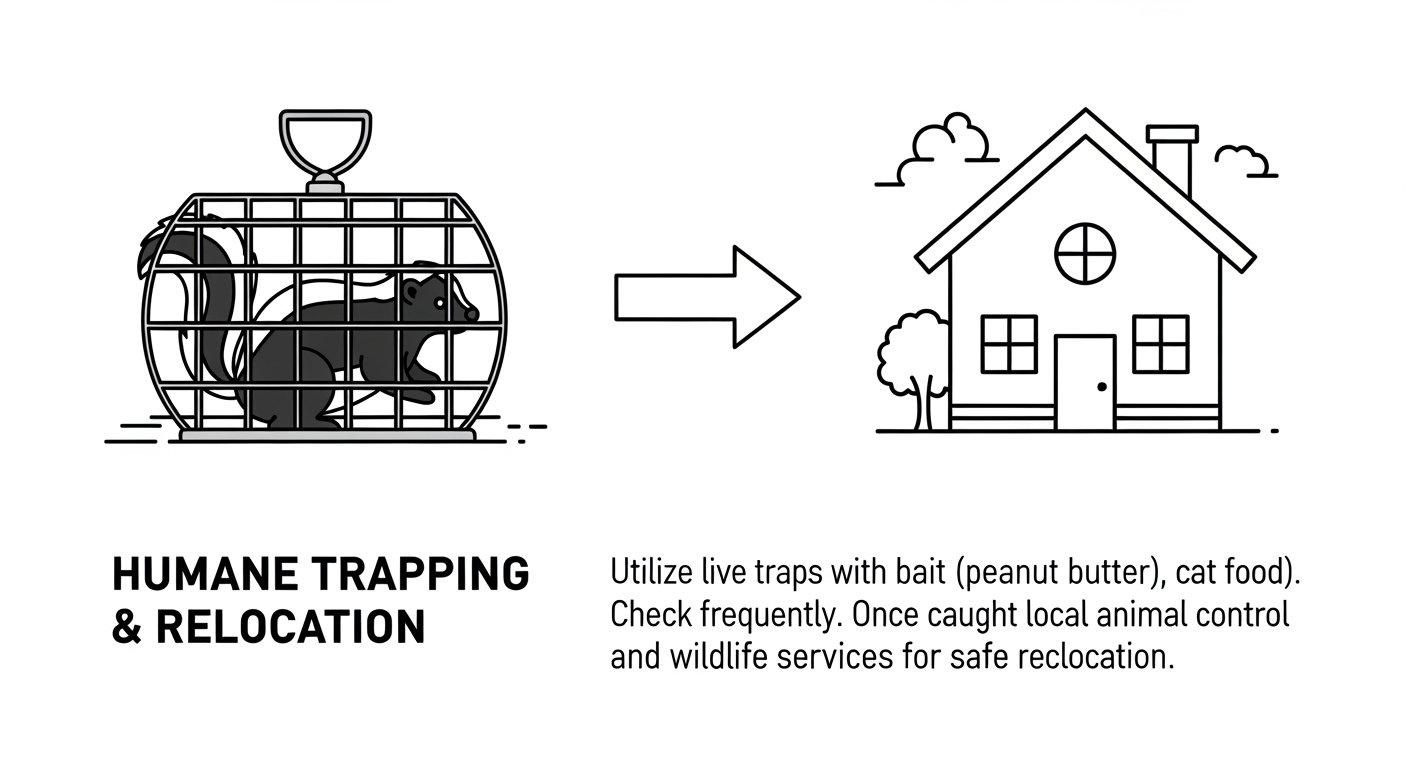 Humane live trapping is one of the most effective skunk removal techniques when performed by trained professionals. Experts understand skunk behavior and place traps strategically to minimize stress and avoid spraying incidents.